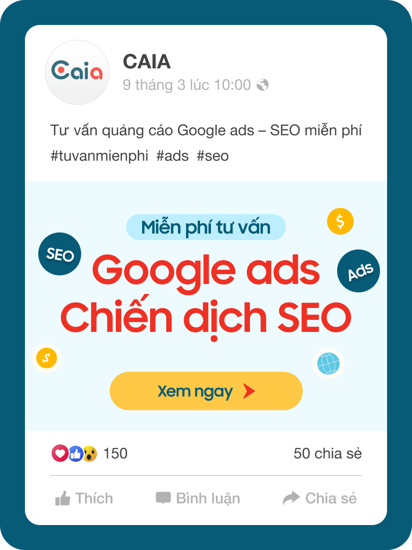 CAIA là đơn vị Google marketing Agency uy tín tại Hà Nội từ 2012. Với đội ngũ nhân sự giàu chuyên môn và kinh nghiệm, chúng tôi cam kết cung cấp một dịch vụ marketing hiệu quả thật cho doanh nghiệp vừa và nhỏ.